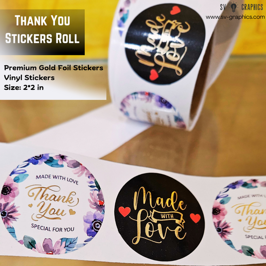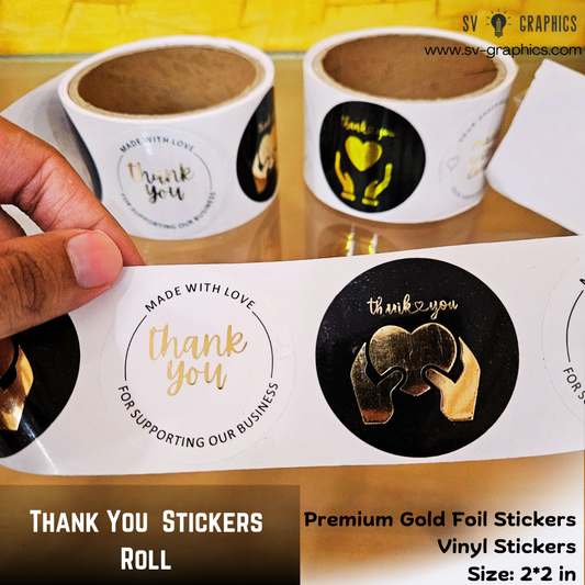 Thank You Roll Premium Gold Foil Stickers Black-White Duo