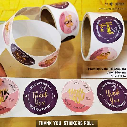Thank You Roll Premium Gold Foil Stickers Black-Pink Duo