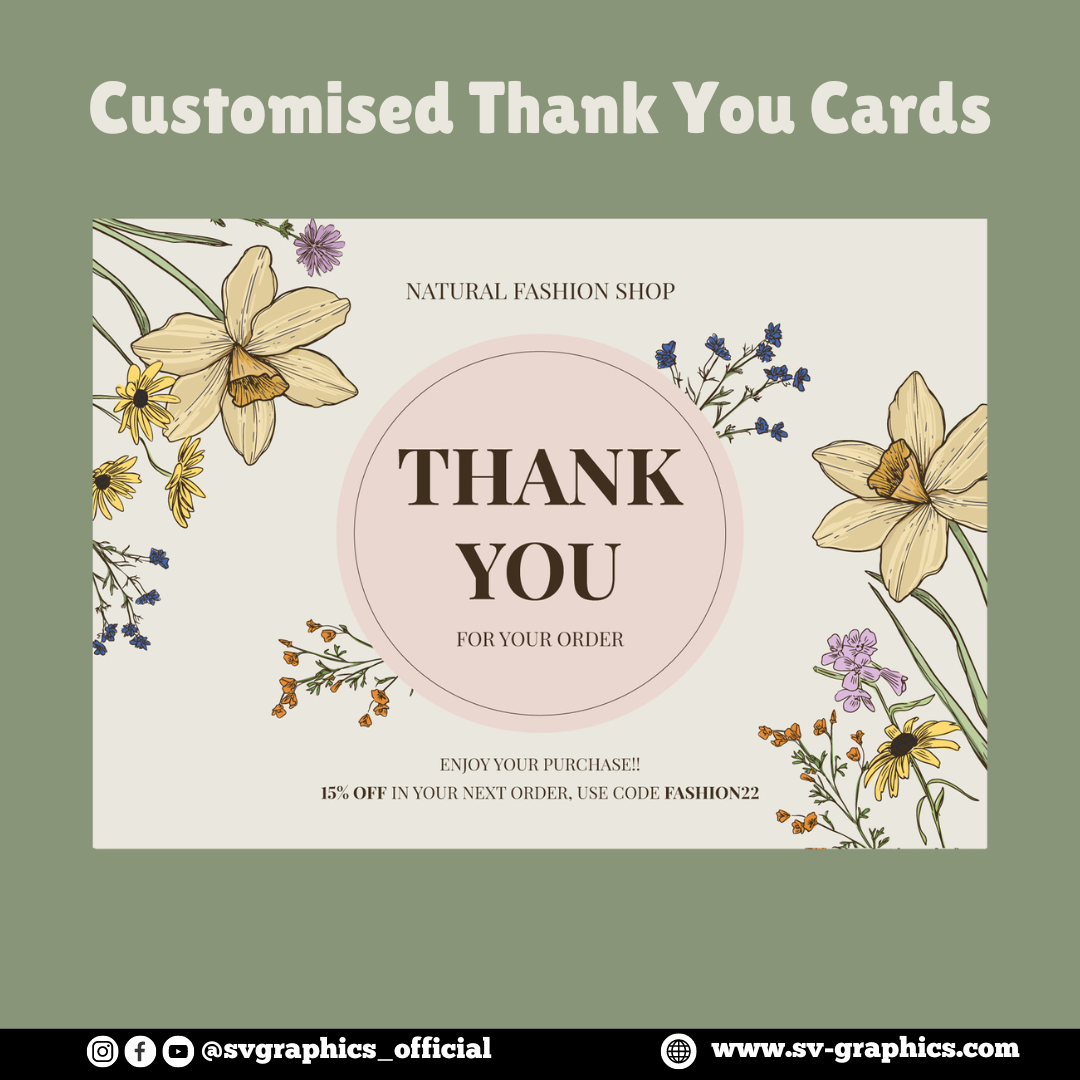 Absolutely! You can choose between single-side or double-side printing for your thank you cards. Pricing will vary based on the printing option you select, with double-side printing incurring a small additional fee.